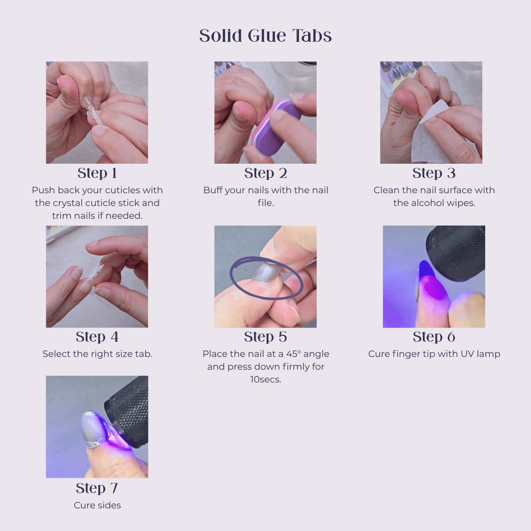 NOTE: Tabs must be cured under a UV lamp for optimal adhesion.